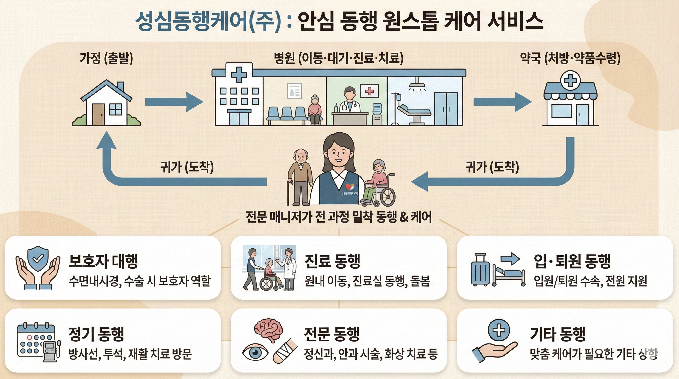 성심동행케어(주)의 병원동행 서비스는 체계적이고 투명하게 진행됩니다.